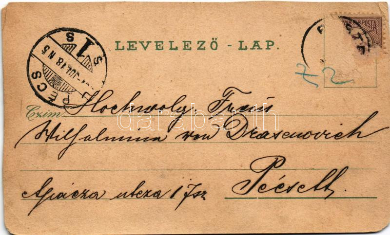 1899 Bártfa, Bártfafürdő, Bardejovské Kúpele, Bardiov, Bardejov; Deák szálloda és az új fürdőház, Főforrás, Széchenyi szálloda, Zborói várrom, Tachy udvar az Eschwig féle üzlettel, cukrászda. Schwidernoch Károly műintézete / spa, hotel, bath, spring source, castle ruins (Zborovsky hrad), shop, confectionery. Art Nouveau, floral, litho (vágott / cut)