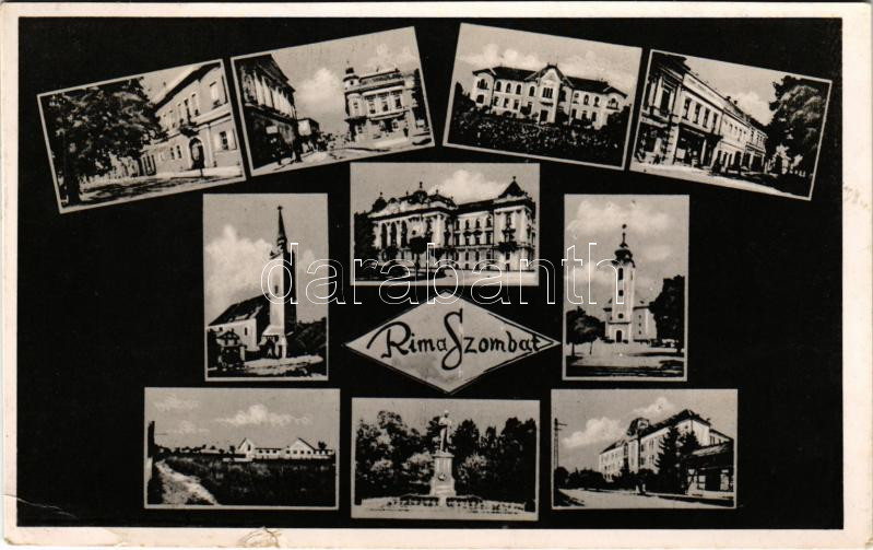 1939 Rimaszombat, Rimavská Sobota; részletek. Klein Géza kiadása / multi-view postcard (szakadás / tear)