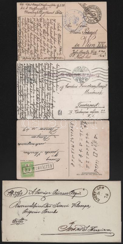 1870-1916 4 klf küldemény: ex offo levél, zsánerlap + 2 db tábori posta képeslap