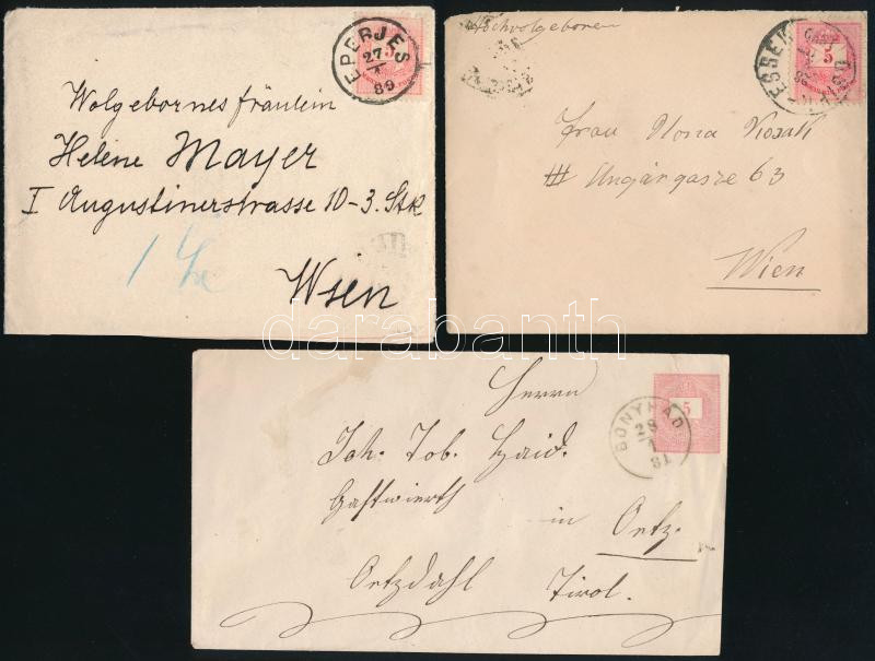 4 db levél Krajcáros bélyegekkel bérmentesítve + 3 db vegyes bérmentesítésű kivágás