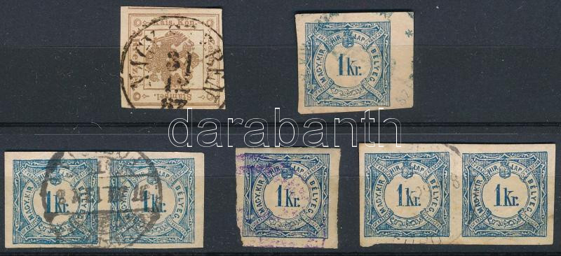 7 db Hírlapilleték bélyeg, közte 2 db pár