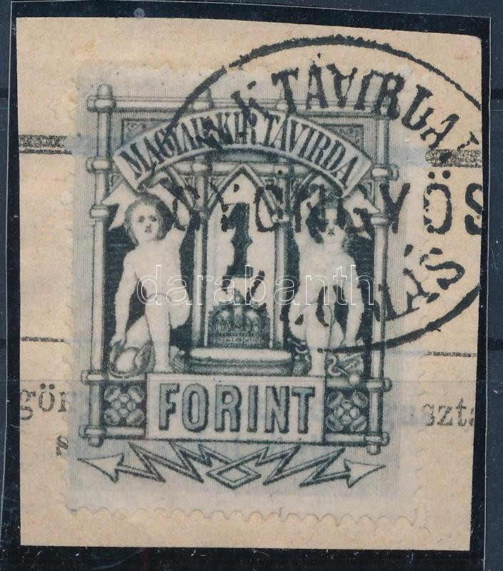1874 Távirda 1Ft kis távirat darabon "M.K. TÁVIRDAI ÁLLOMÁS GYÖNGYÖS" ritka, R!