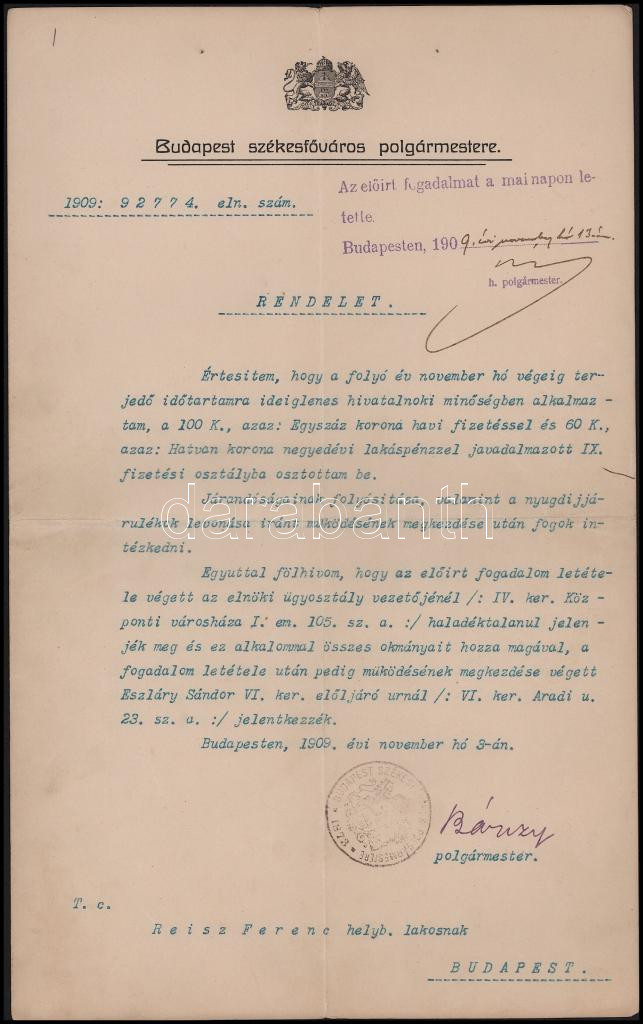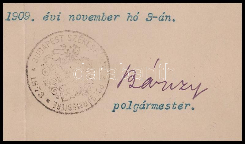 1903 Bárczy István (1866-1943) Budapest polgármestere autográf aláírása levélen