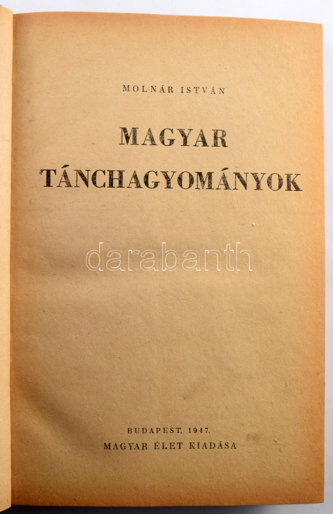 Molnár István: Magyar tánchagyományok. Bp., 1947, Magyar Élet. 435p. Kiadói félvászon kötés, sérült papír védőborítóval, kissé kopottas állapotban.