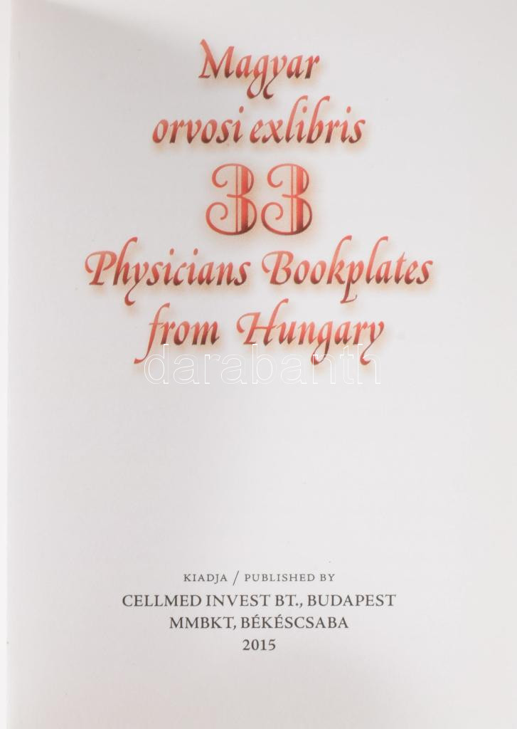 33 Magyar orvosi exlibris. / 33 Physicians Bookplates from Hungary. (Minikönyv.) Bp.-Békéscsaba, 2015, Cellmed Invest Bt. - MMBKT. Kiadói kartonált papírkötés. Megjelent 200 példányban. Számozott (178./200).