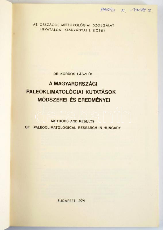 Dr.Kordos László: A magyarországi paleoklimatológiai kutatások. Budapest, 1979. OMSZ 167p. Kiadói papírborítóval.