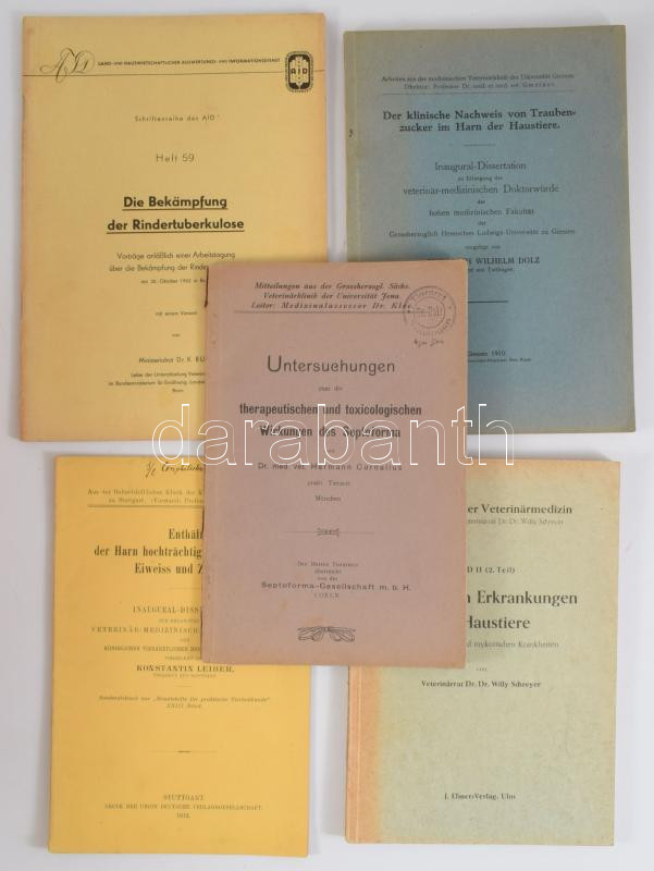 Vegyes, német nyelvű állatorvosi könyvtétel, 5 db: