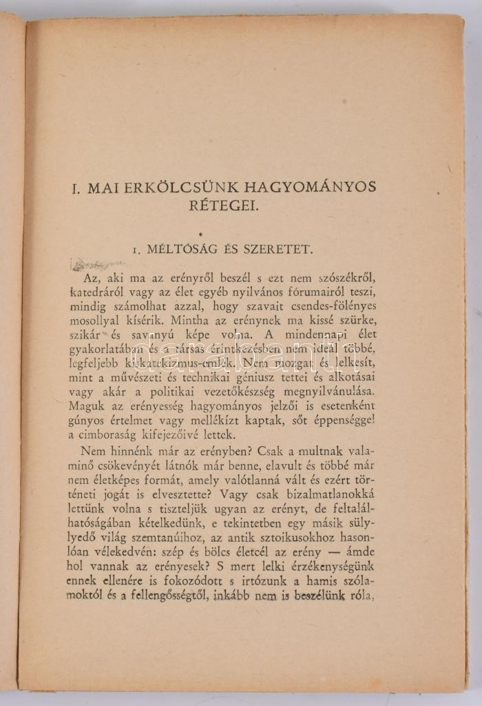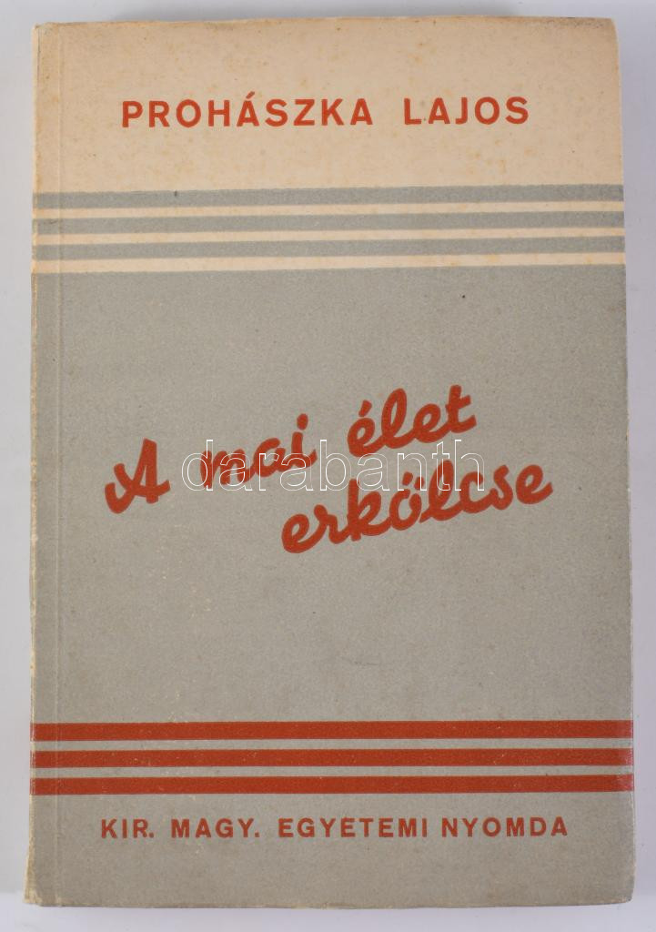Prohászka Lajos: A mai élet erkölcse Bp.,én., Kir. M. Egyetemi-ny.,240 p. Kiadói papírkötés, kissé kopott borítóval, a borító részben elvált a könyvtesttől.