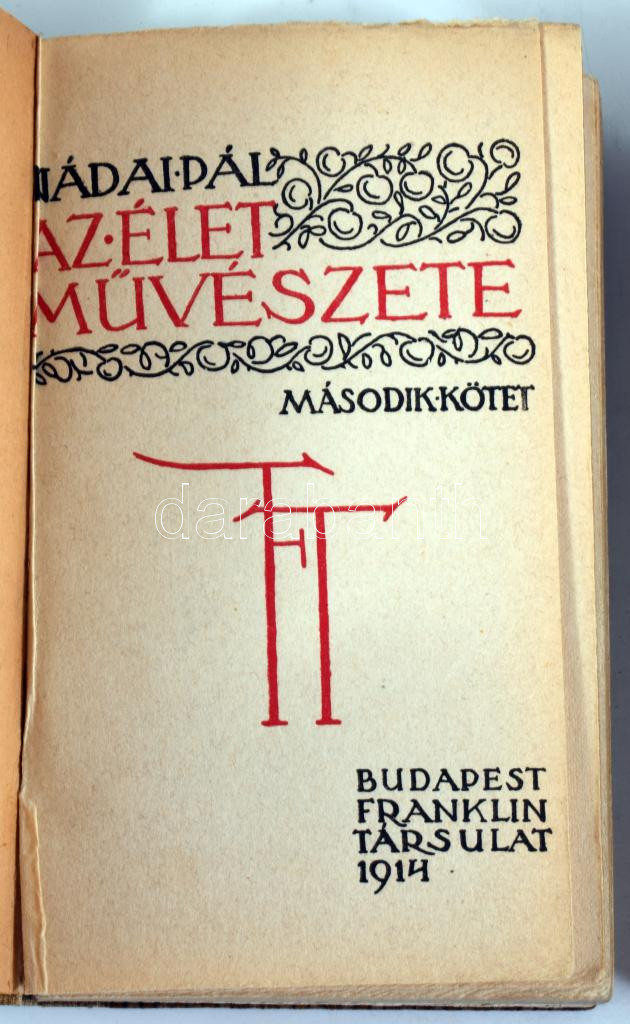 Nádai Pál: Az élet művészete I-II. köt. Bp., 1914, Franklin, 4+237 p.+15 t.; 6+215 p.+17 t. Ex libris-szel: Ex Libris Vészi Endre. Átkötött félvászon-kötésekben, az I. kötet kissé sérült gerinccel és kijáró elülső szennylappal.
