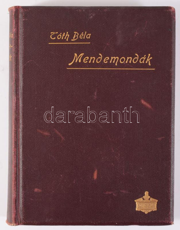 Tóth Béla: Mendemondák. A világtörténet furcsaságai. Gyűjtötte és magyarázza: - - . Bp., 1901, Athenaeum, XI+[1]+418+[2] p. Második, javított és bővített kiadás. Kiadói aranyozott, illusztrált egészvászon-kötés, jó állapotban, a borítón és gerincen némi kopással, ex libris-szel.