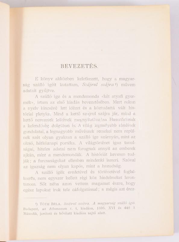 Tóth Béla: Szájrul szájra. A magyarság szálló igéi. Gyűjtötte és magyarázza: - - . Bp., 1901, Athenaeum, XV+[1]+506+[2] p. Második, javított és bővített kiadás. Kiadói aranyozott, illusztrált egészvászon-kötés, jó állapotban, a borítón és gerincen némi kopással.