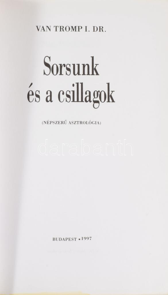 [Alpáry Imre] van Tromp I.: Sorsunk és a csillagok. (Népszerű asztrológia.) Bp., 1997, Blue Skies Marketing Iroda. Reprint kiadás. Kiadói papírkötés.