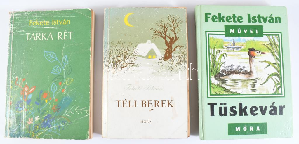 Fekete István 3 kötete: Tüskevár. Bp., 2008, Móra. Kiadói kartonált papírkötés. + Téli berek. Reich Károly rajzaival. Bp., 1977, Móra. Kiadói papírkötés, sérült, helyenként lapszéli ázásnyomokkal. + Tarka rét. Elbeszélések és versek. Würtz Ádám rajzaival. Bp., 1986, Móra. Kiadói papírkötés, viseltes, sérült borítóval.