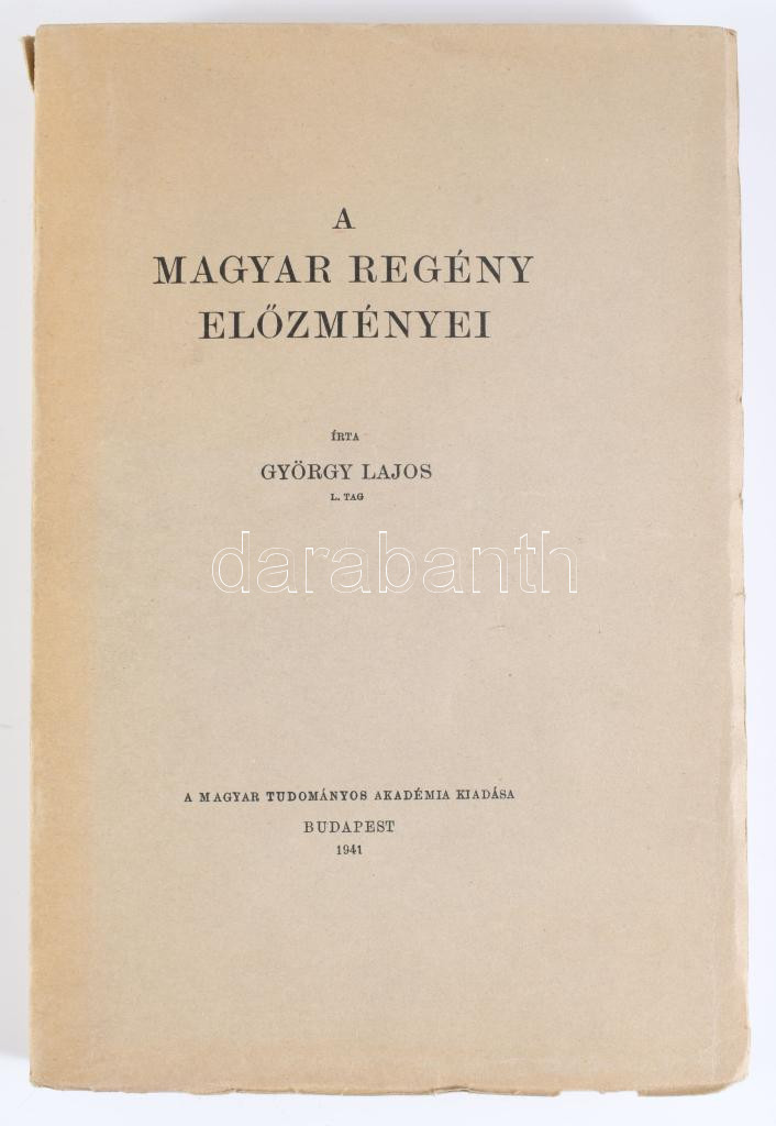 György Lajos: A magyar regény előzményei. Bp., 1941, MTA. 540p. Felvágatlan példány. Kiadói papírkötés, gerinc kissé sérült, kopottas állapotban.
