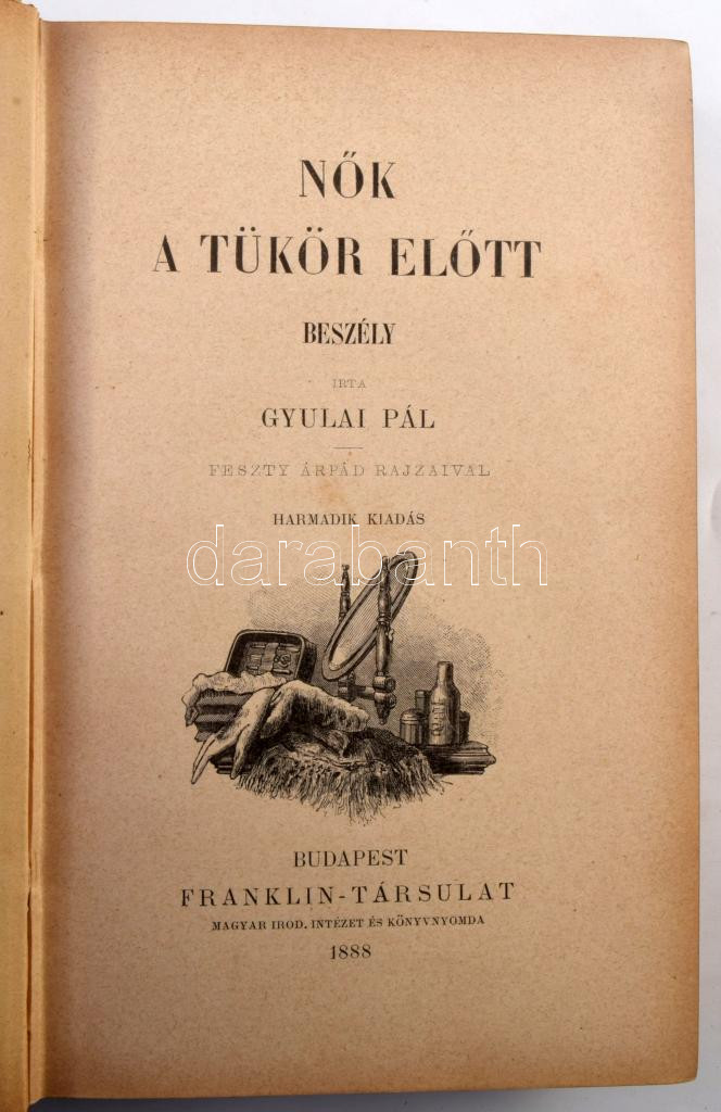 Gyulai Pál: Nők a tükör előtt. Beszély. Feszty Árpád rajzaival. Bp., 1888., Franklin, 158 p. Kiadói aranyozott egészvászon-kötés, Gottermayer-kötés, aranyozott lapélekkel