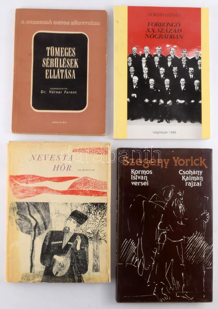 4 db dedikált könyv: Kormos István-Csohány Kálmán: Szegény Yorick, Al Kostan Nemet a mór, Horváth István: Forrongó XX. század Nógrádban, Dr Várnai Ferenc: Tömeges sérülések ellátása