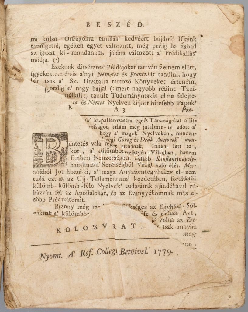 Gombási István: Egynéhány válogatott és szükségesebb matériákra való prédikátziók. Melyeket Frantz és Német nyelvekből Magyarra fordított és holmi Jegyzegetésekkel megbövítve közönségessé tett ? ?. Kolo?sváratt, 1779. A Ref. Collegium Betüivel. [12] + 352 + [2] p. + hozzákötve