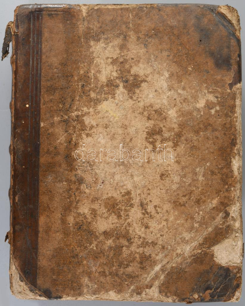Címlap és első lap hiányos Korabeli sérült félbőr kötésben.