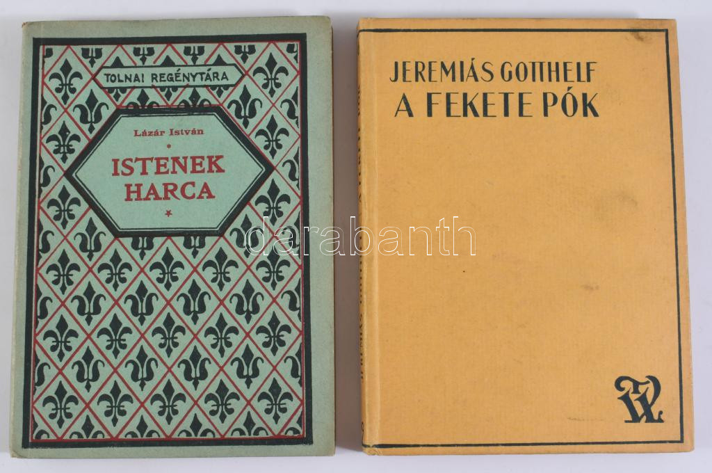 Jeremias Gotthelf: A fekete pók. Regény. Ford.: Moly Tamás. + Lázár István: Istenek harca. Regény. Bp.,én.,Tolnai. Kiadói kartonált papírkötés és kiadói papírkötés.