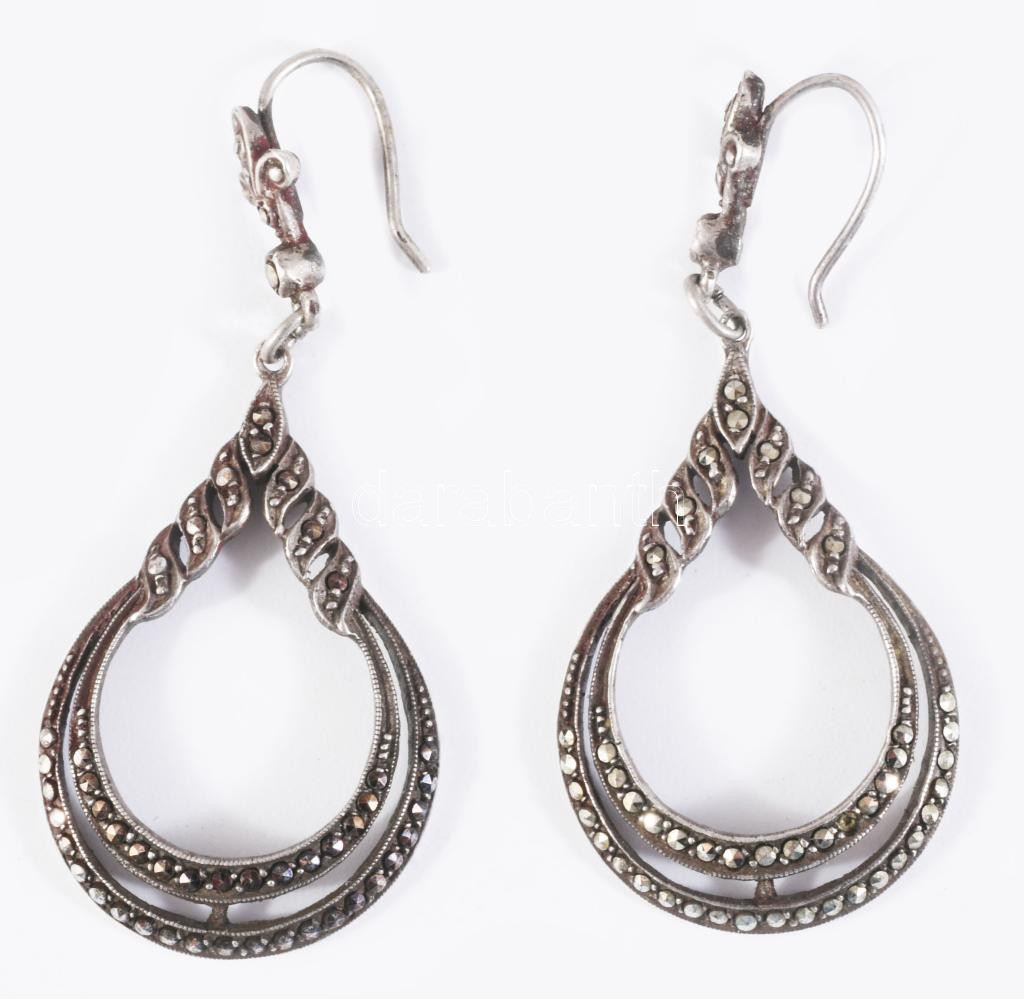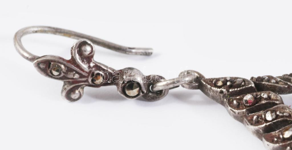 Ezüst (ag) fülbevaló pár markazitokkal, bruttó 8,3g