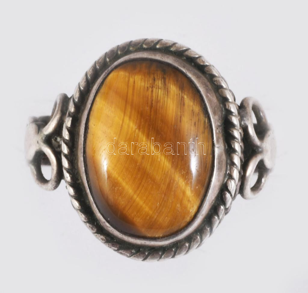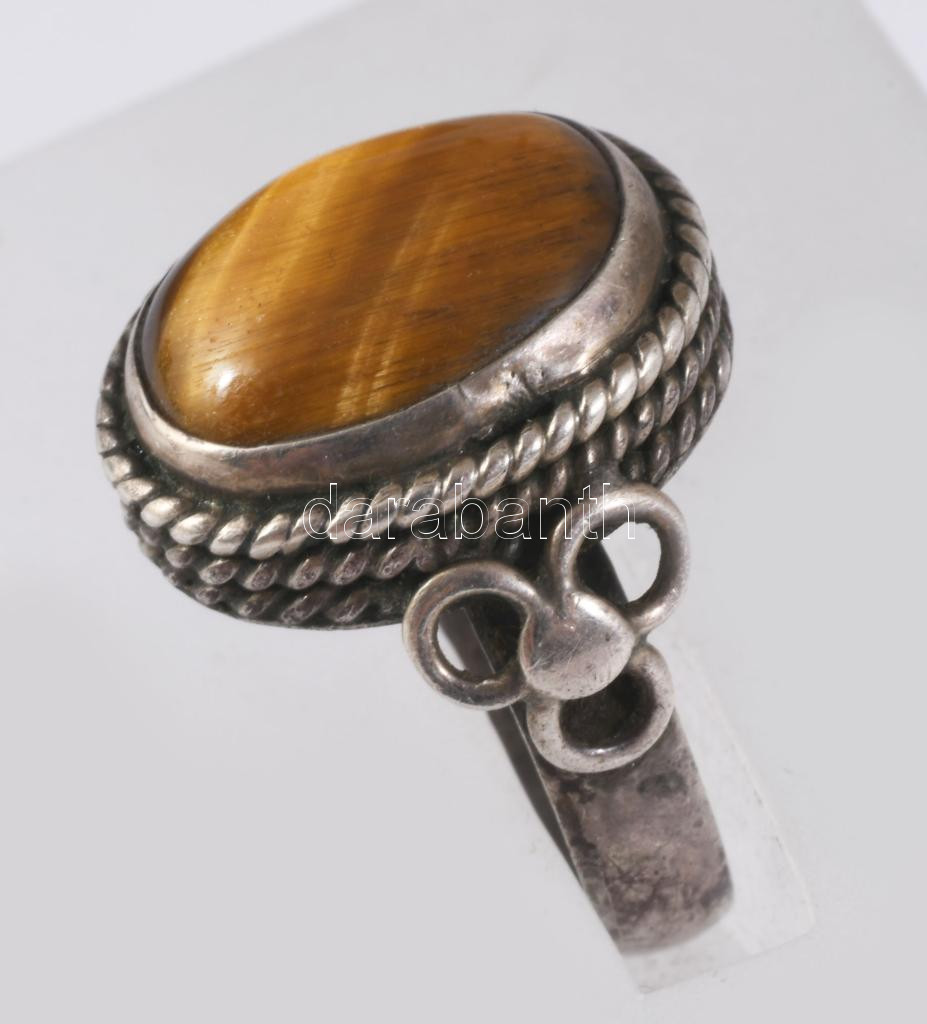 Ezüst (Ag) gyűrű, tigrisszem berakással, jelzett, 925 ezrelékes, m:54, bruttó 7,2g