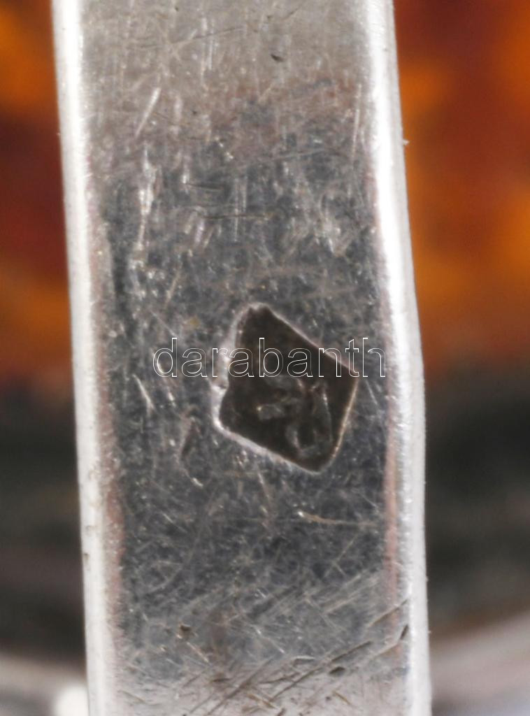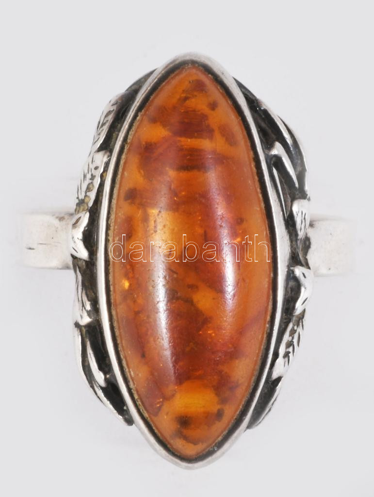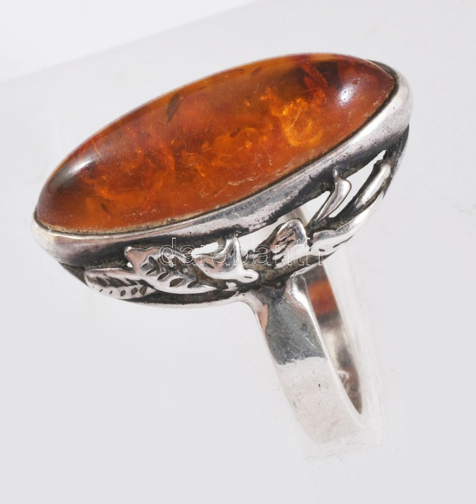 Ezüst (Ag) gyűrű, borostyán berakással, jelzett, m:59, bruttó 5,5g