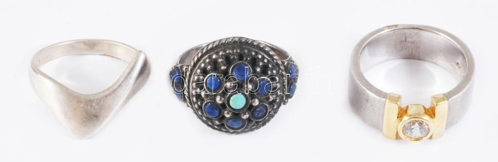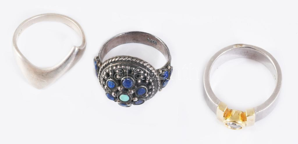 3 darab ezüst (ag) gyűrű, jelzett, közte kő berakásokkal, m:55,58,59, bruttó 21g