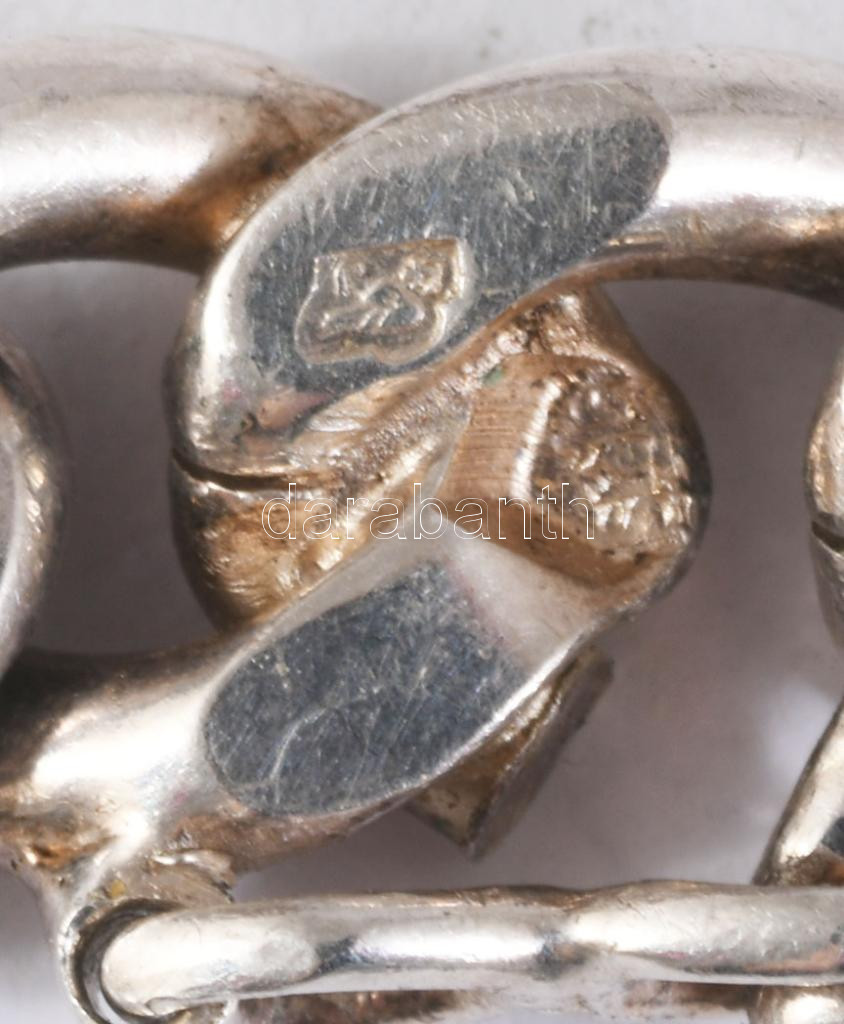 Ezüst (Ag) pancer 2+1 szemes karlánc, jelzett, h: 17 cm, 12,4g