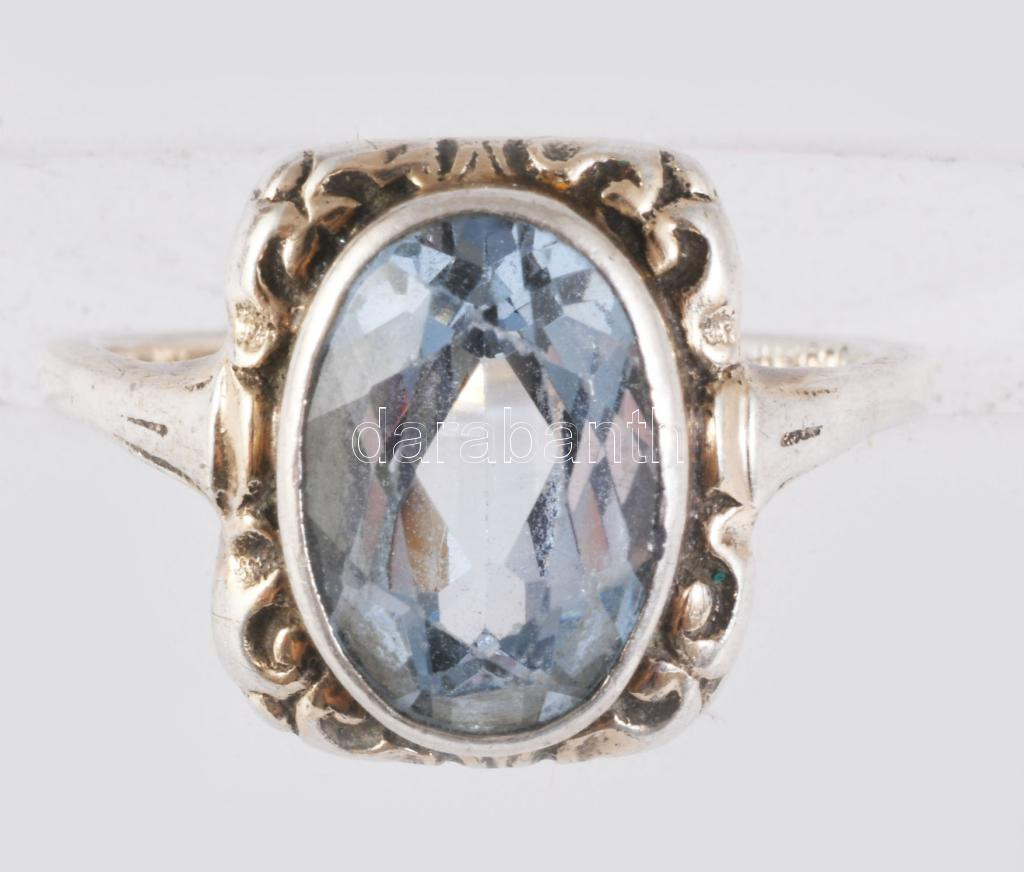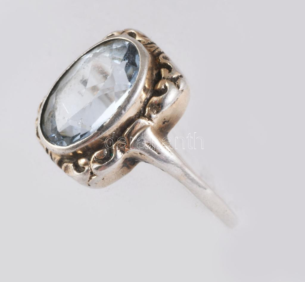 Ezüst (ag) szoliter gyűrű, benne kékszínű szintetikus spinell, m:50, bruttó 2,84g