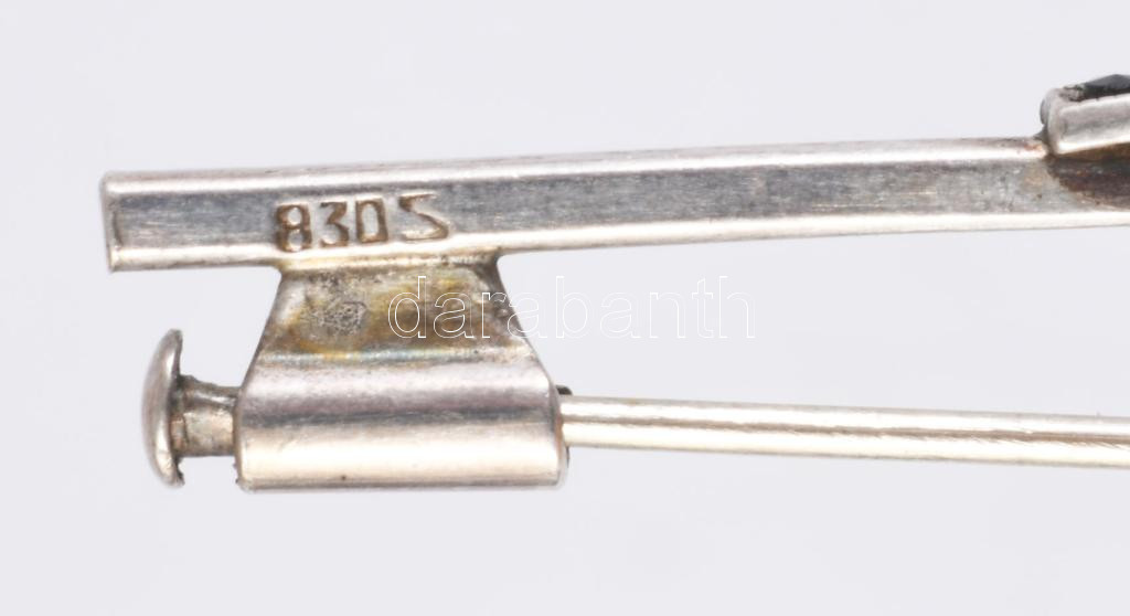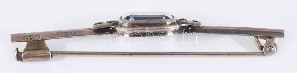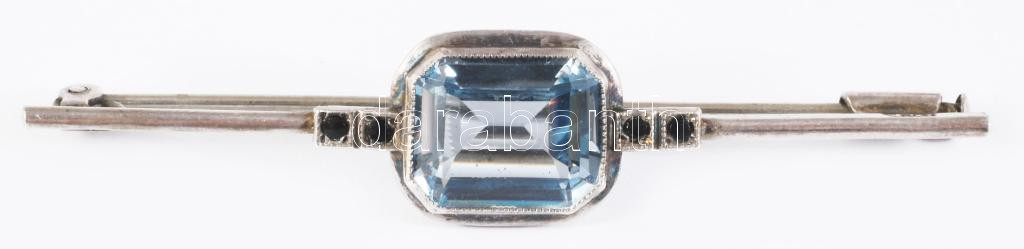Ezüst (ag) melltű, kék szintetikus spinell befoglalással, jelzett, 835 ezrelékes, h:6 cm, bruttó 4,7g