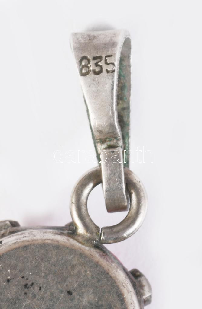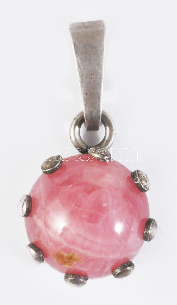 Ezüst (ag) függő, kaboson csiszolású rodokrozit befoglalással, jelzett, 835 ezrelékes, bruttó 1,84g