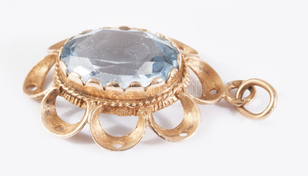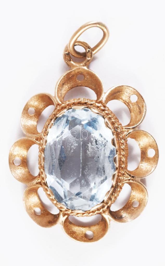 14k arany (Au) medál szintetikus kővel, Pénzverő, 1966-1998 közötti fémjel, jelzett, br 3,2 g