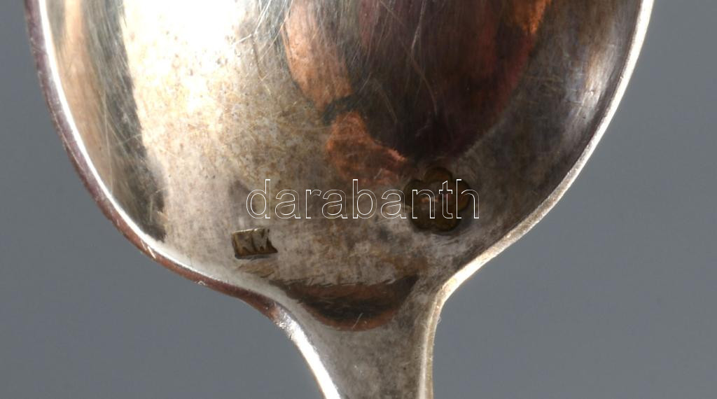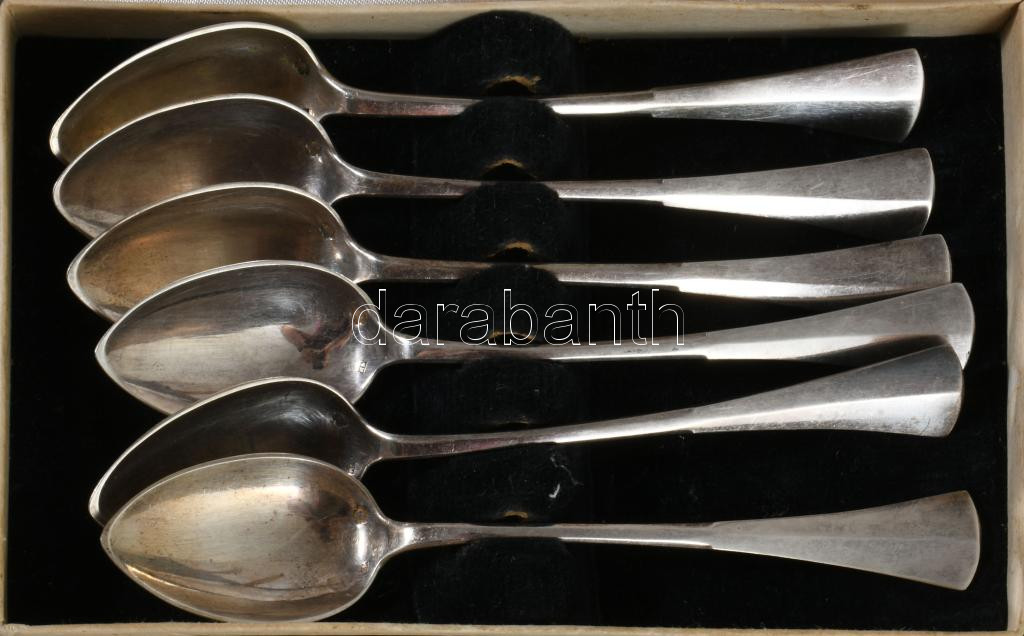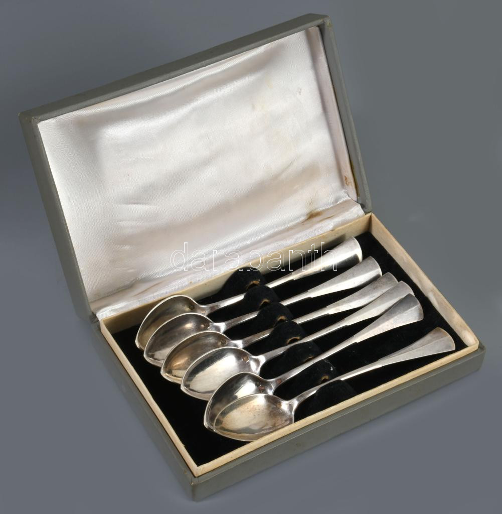 Ezüst (Ag) teás kanál készlet, díszdobozban, nettó 96 g ca 1900 dianás jelzéssel.
