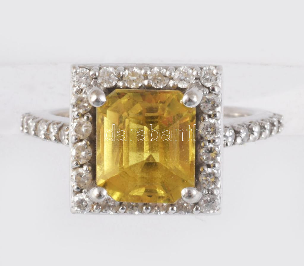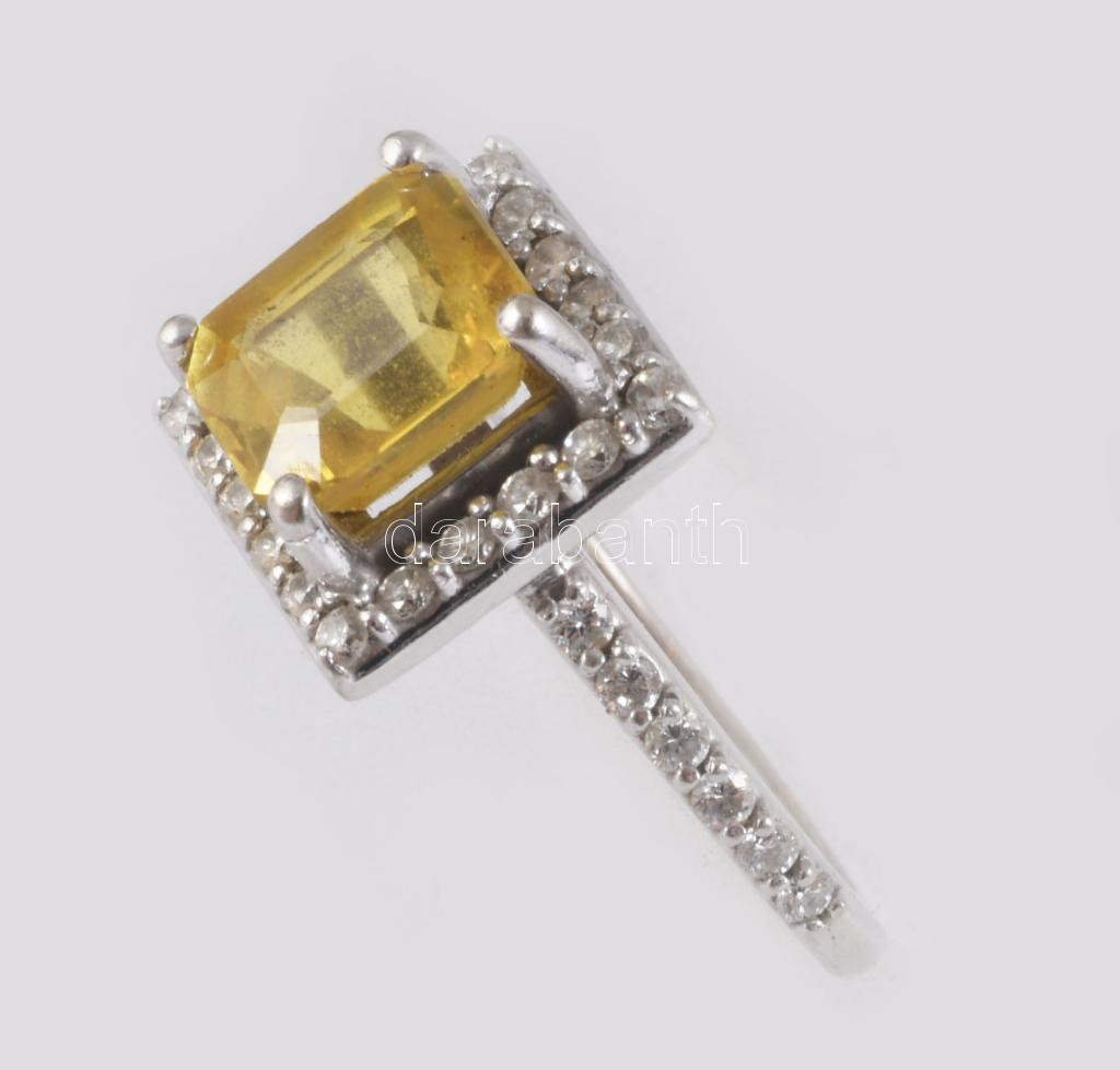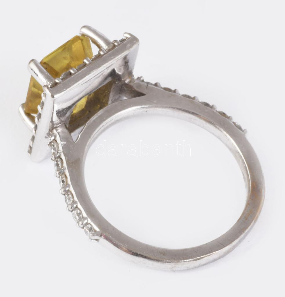 Arany (Au) 18K gyűrű, karmos foglalatban szintetikus korund ékítéssel, jelzett, méret: 48, bruttó: 8,9 g