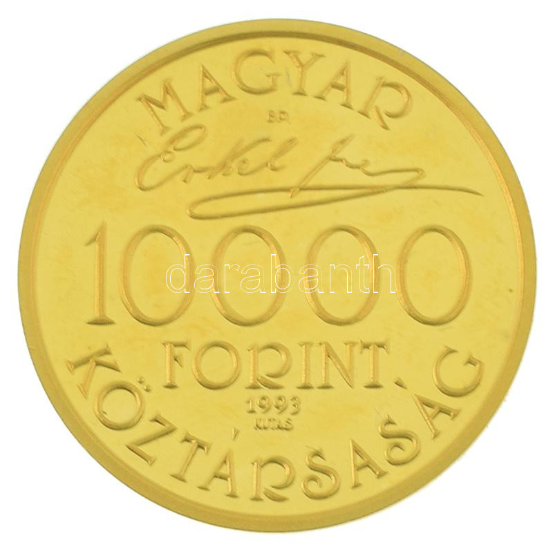 1993. 10.000Ft Au "Erkel Ferenc" (6,98g/0.986) kapszulában, tanúsítvánnyal, sérült tokban T:PP