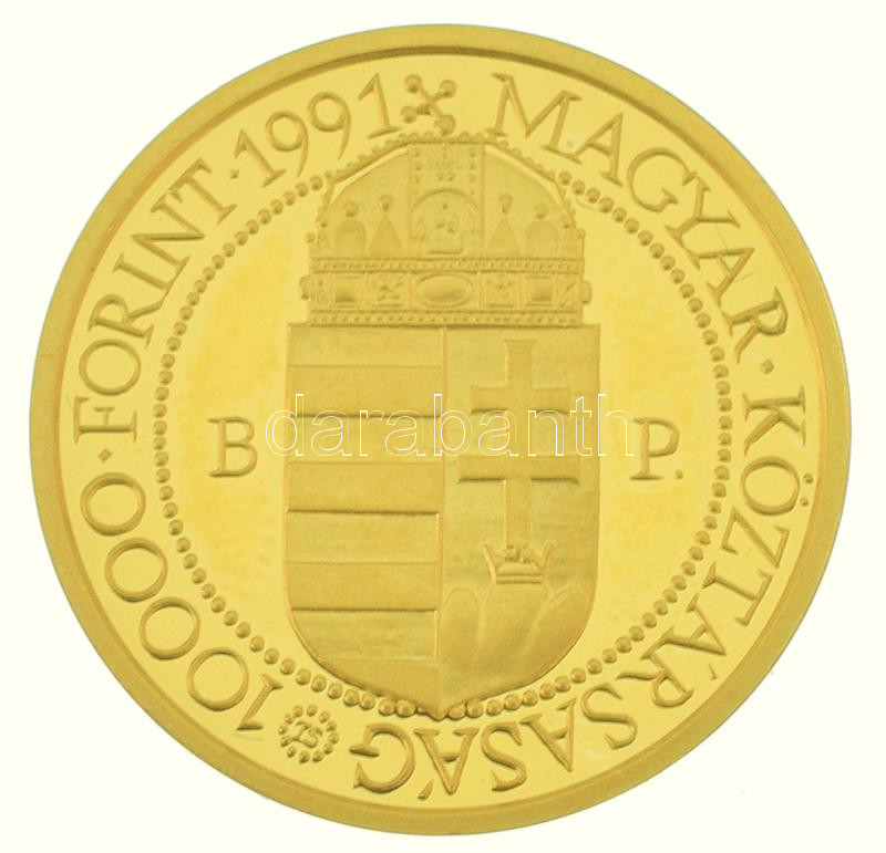 Hungary 1991. 10.000 Forint Au "Visit of Pope John Paul II" in capsule, in case (7,00g/0.986) C:PP