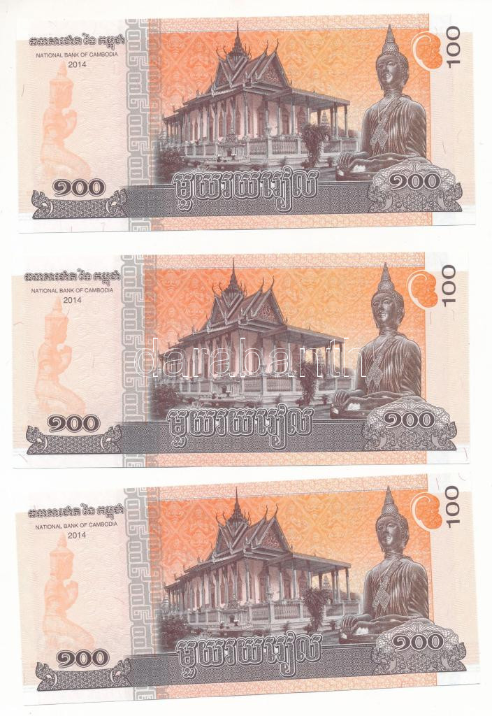 Cambodia 2014. 100 Riels (3x) consecutive serials C:UNC