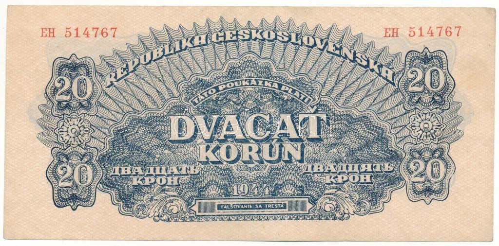 Csehszlovákia 1944. 20K "EH 514767" T:F szép papír