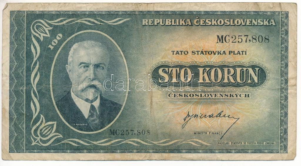 Czechoslovakia 1945. 100 Korun "MC257,808" C:F,VG