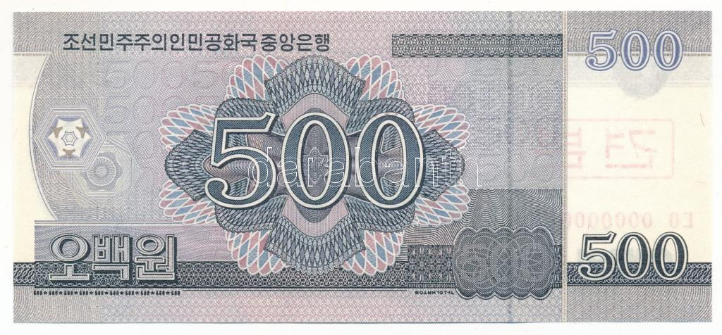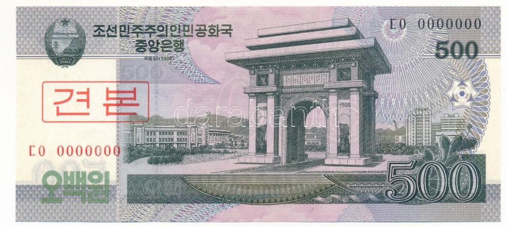 Észak-Korea 2008. 500W "00000000" sorszámmal, piros koreai "MINTA" felülbélyegzéssel T:UNC