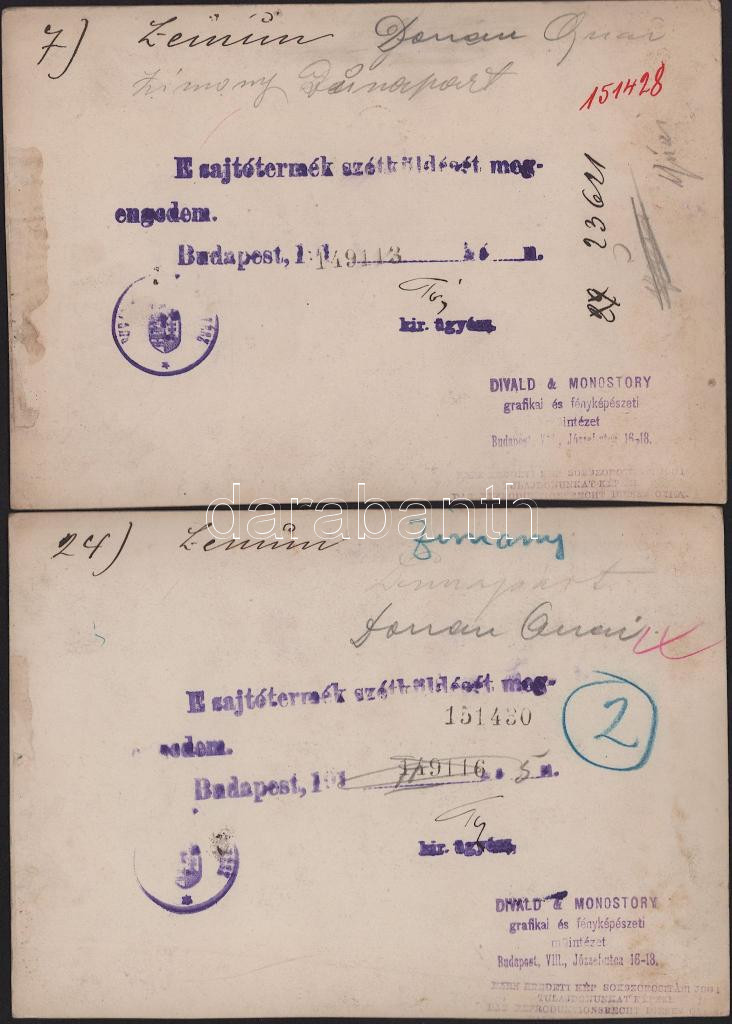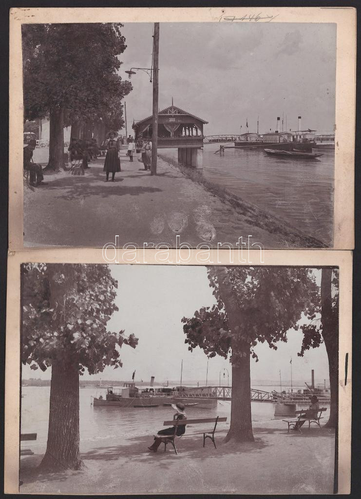cca 1910 Zimony, élet a folyóparton, 2 db kartonra ragasztott folyó, hátoldalon feliratozott sajtófotó Divald és Monostory műterméből, felületén ujjlenyomatok, 2,5×17 cm