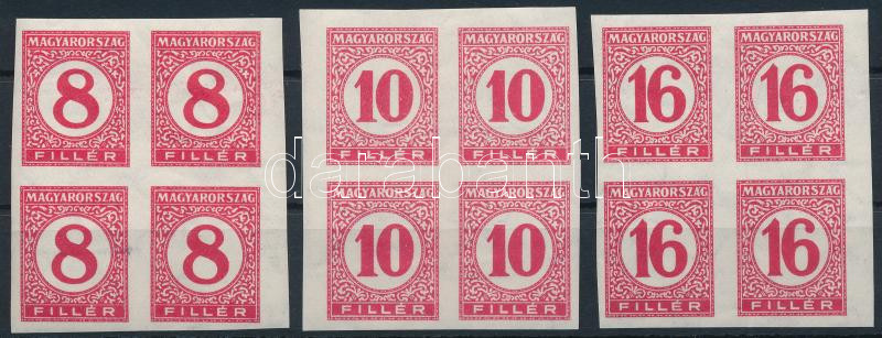 1929 Pengő-filléres portó II. 3 értékes vágott sor vékony papíron négyestömbökben (60.000)