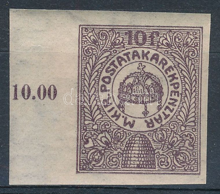 1916 Postatakarékpénztári vágott ívszéli bélyeg