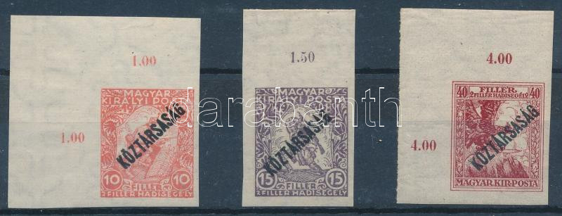 1918 Hadisegély/Köztársaság vágott ívszéli / ívsarki sor