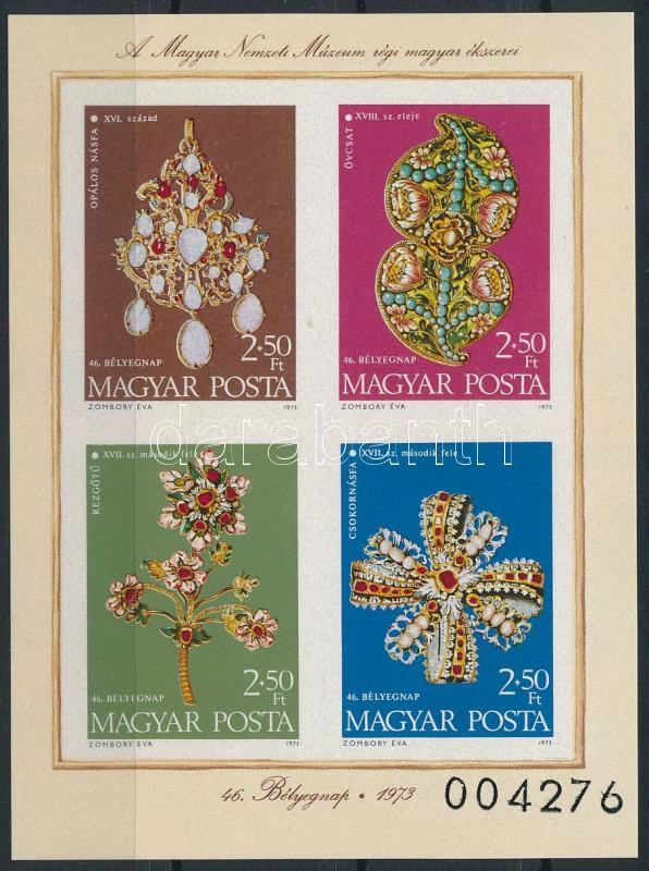 1973 Bélyegnap - A Magyar Nemzeti Múzeum régi magyar ékszerei vágott blokk