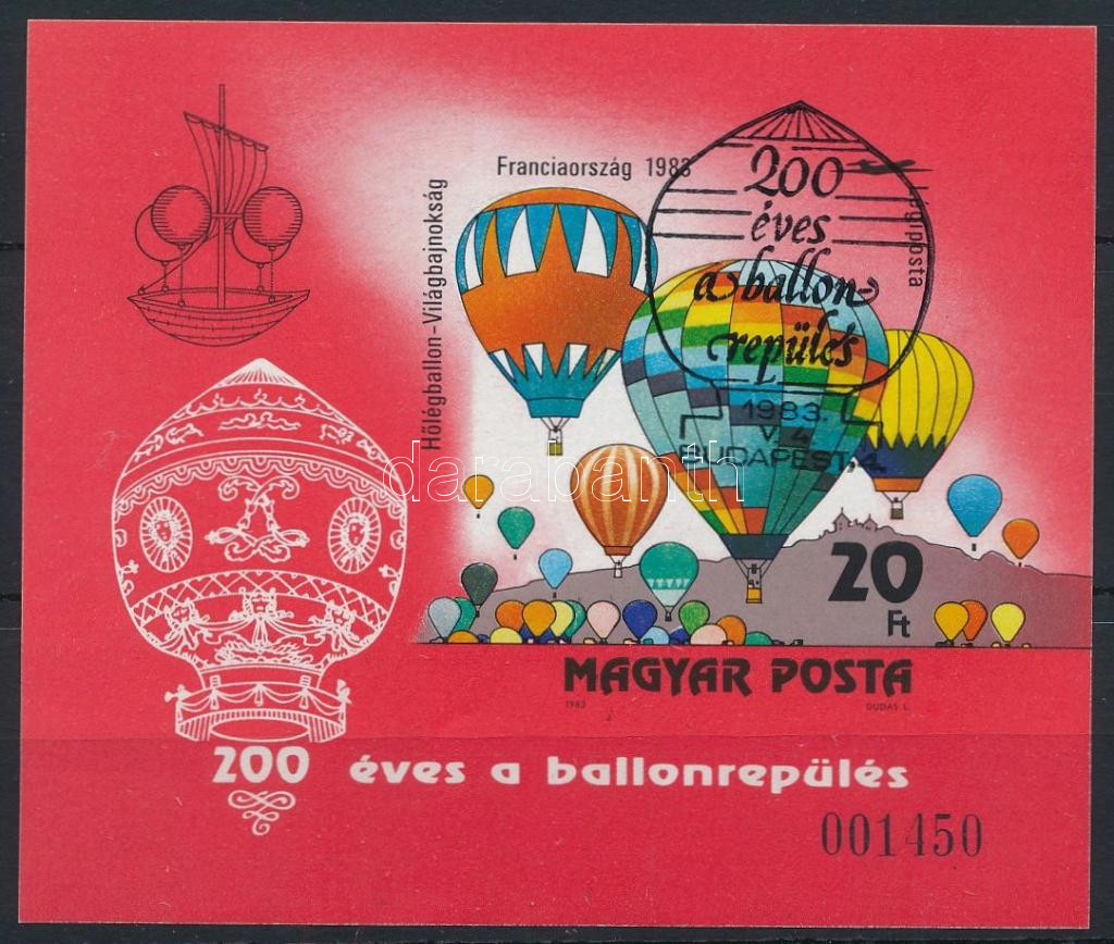 1983 200 éves a ballonrepülés vágott blokk