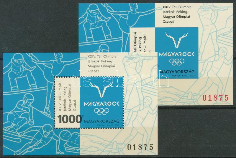 2022 Téli olimpia (X.) Peking fogazott és vágott blokk azonos 01875 sorszámmal (13.000)