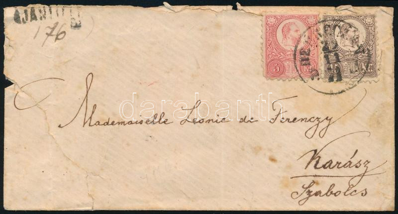 1871 Réznyomat 5kr + 15kr ajánlott levélen, főnemesi címzettnek "DEBRECZEN" - Karász