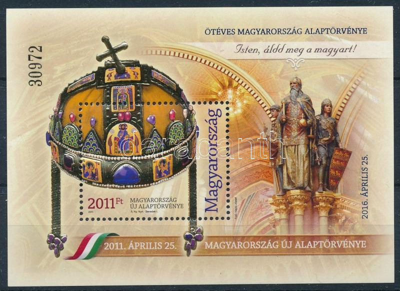2016 Ötéves Magyarország új alaptörvénye blokk felülnyomással (25.000)
