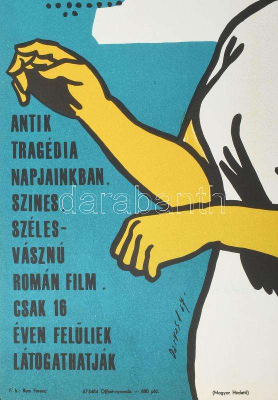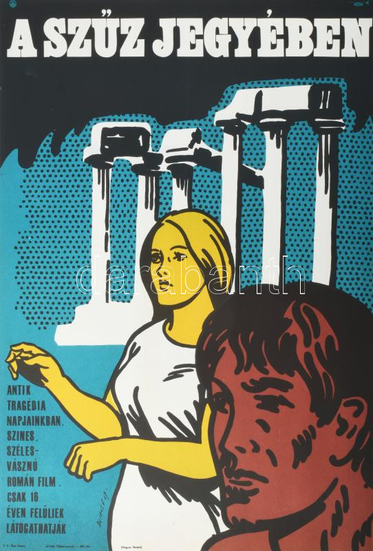 Darvas Árpád (1927-2015): A szűz jegyében, 1967, filmplakát, papír, jelzett a plakáton. Offset-nyomda. Hajtásnyommal. 58,5×40 cm.